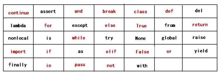 关键字是一种特殊的标识符,是python语言自己内置的标识符。我们开发程序定义的标识符,不能与关键字冲突了。