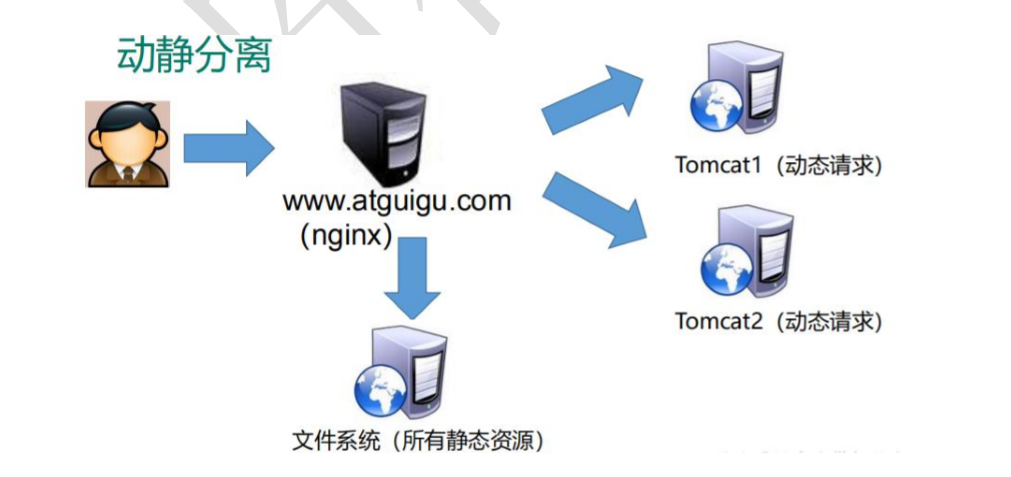 为了加快网站的解析速度,可以把动态页面和静态页面由不同的服务器来解析,加快解析速 度。降低原来单个服务器的压力。