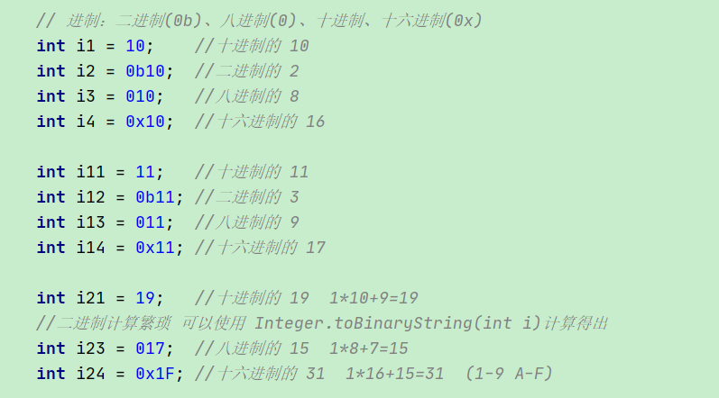 进制:二进制(0b)、八进制(0)、十进制、十六进制(0x)