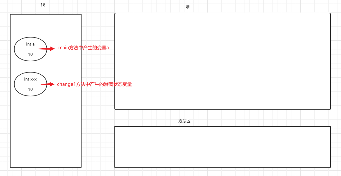 值传递是将‘10’复制一份副本,传入到change1方法内,对‘副本’进行了操作,可以想象成将游离状态的副本进行了操作,