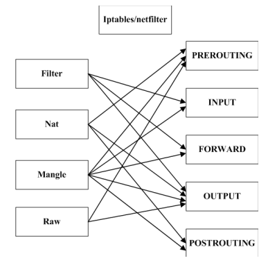 iptables包含4个表,5个链。其中表是按照对数据包的操作区分的,链是按照不同的Hook点来区分的,表和链实际上是netfilter的两个维度。