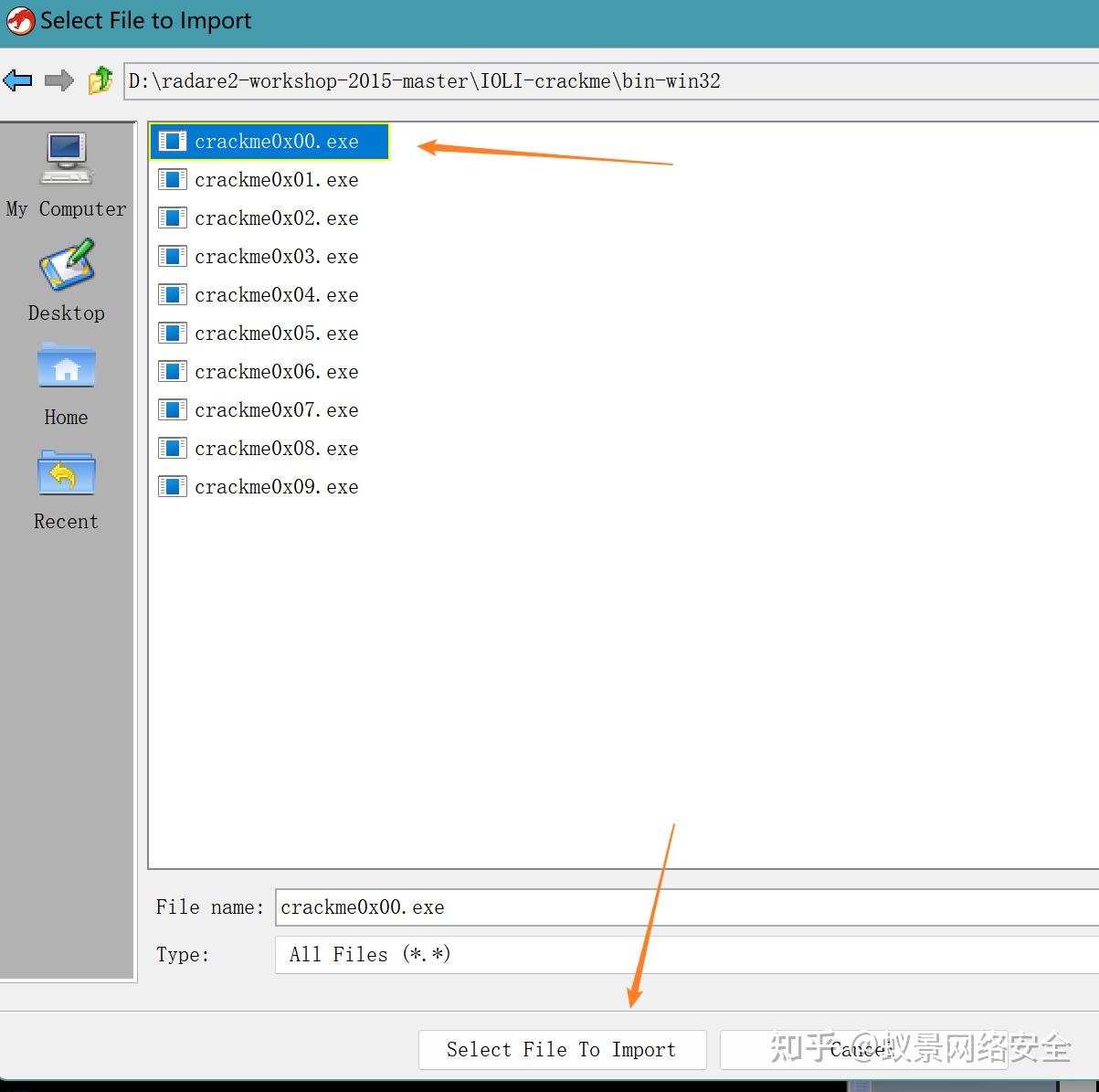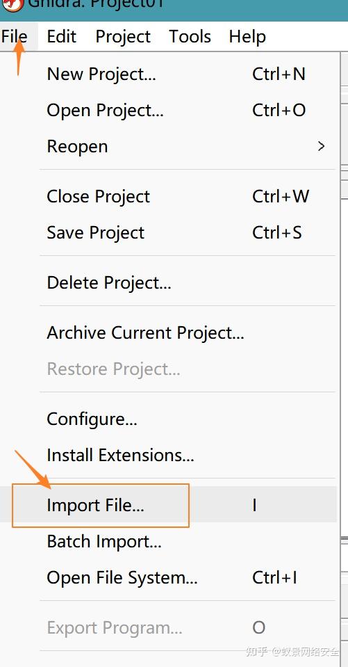 接下来,我们需要导入一个文件。这是你要分析的软件或恶意软件。"File" -->"Import File"。