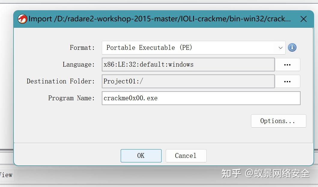 然后,Ghidra会显示一个像下面这样的窗口,显示有关该文件的关键信息。