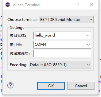 8.点击终端按钮(小电视)启动终端进行数据打印监听。配置好串口号点击OK。