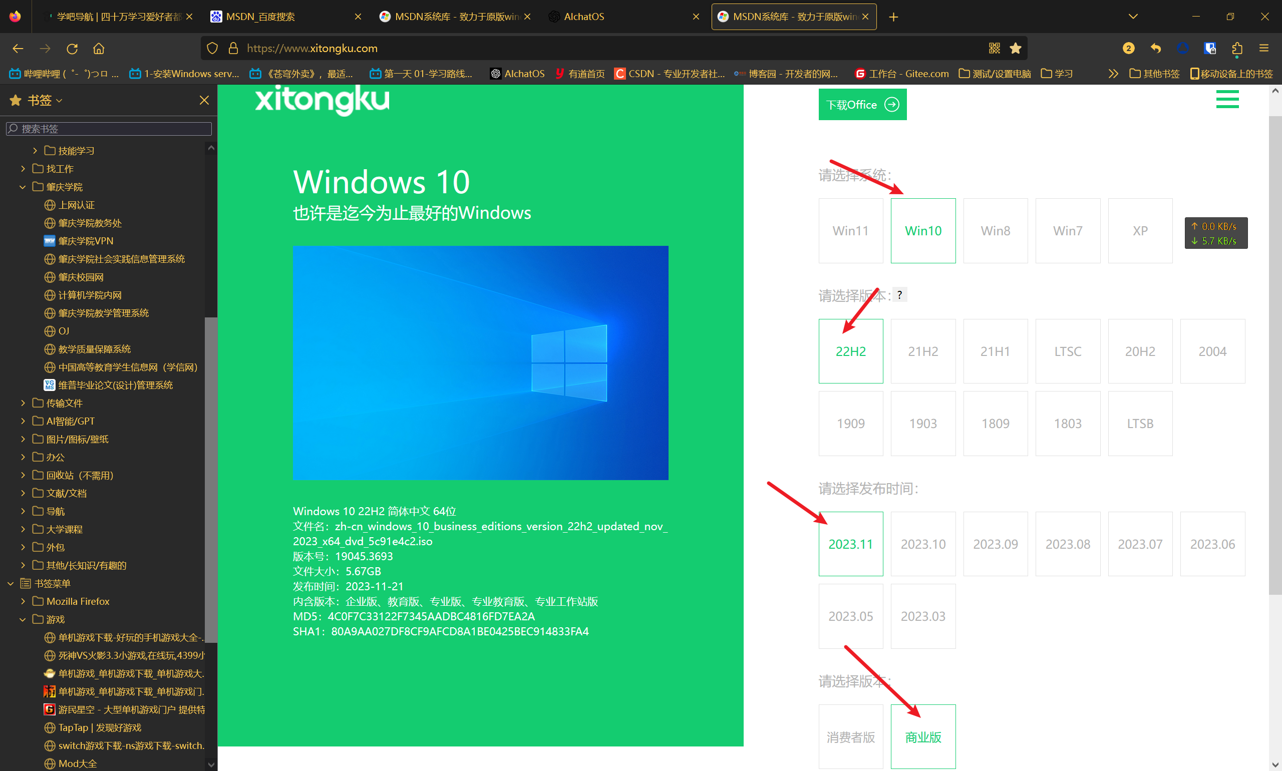 自行在网上搜寻想要下载的版本,我这提供MSDN 的下载链接:https://www.xitongku.com/,纯净无广告