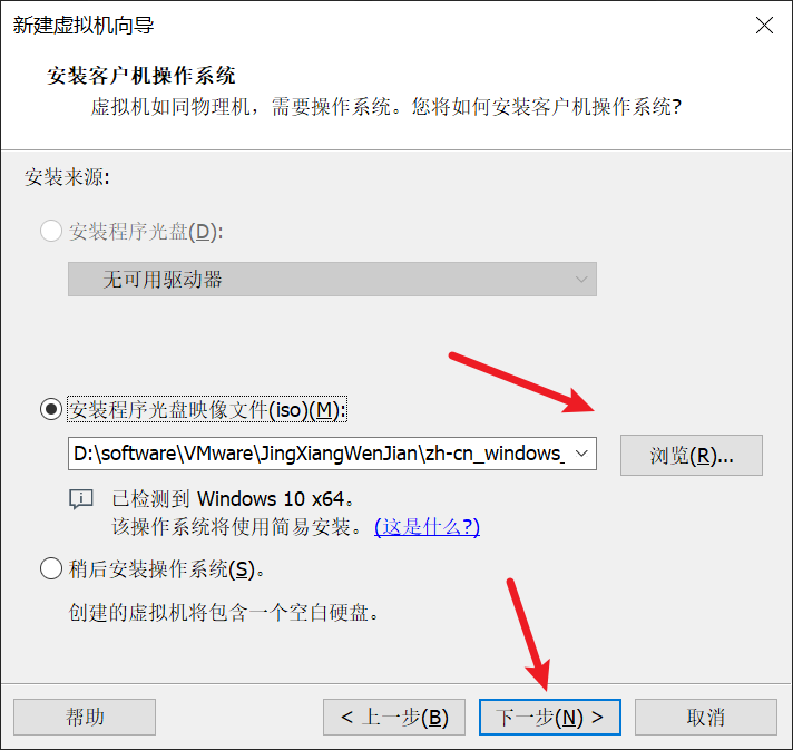 点击浏览,选择自己下载好的镜像文件,然后点击下一步