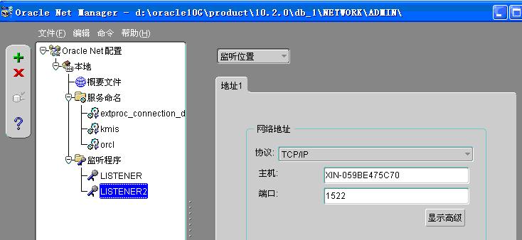 3) 启动oracle10G的服务,在10G的Net Manager工具里增加一个侦听,端口号为9i的1522。