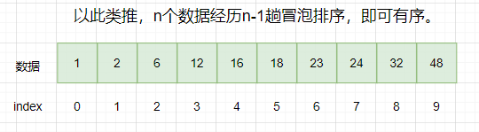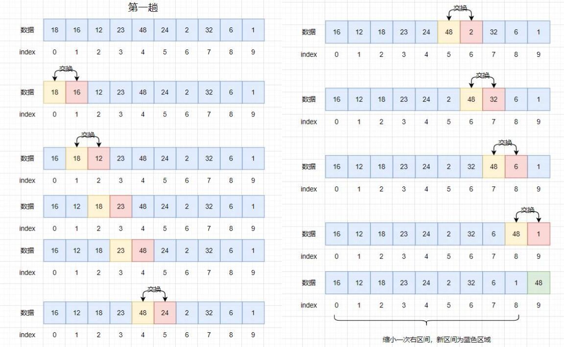 4、持续每次对越来越少的元素进行如上操作,直到没有一对数字需要比较