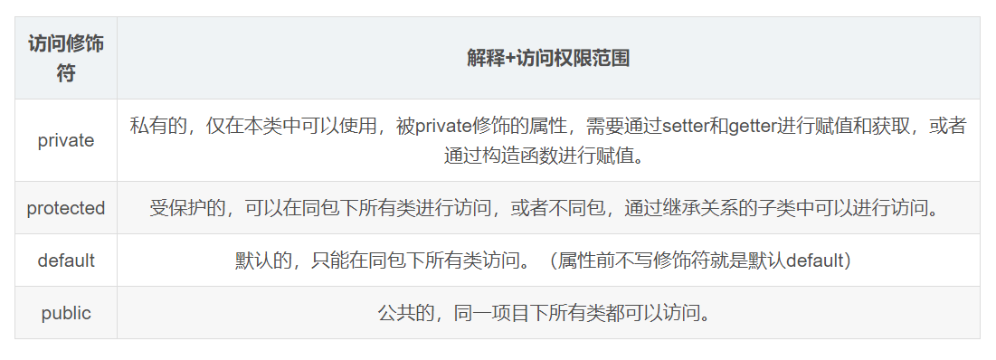 3.默认的(不写)default:只有当前包下可以访问(把包导进来也不行)