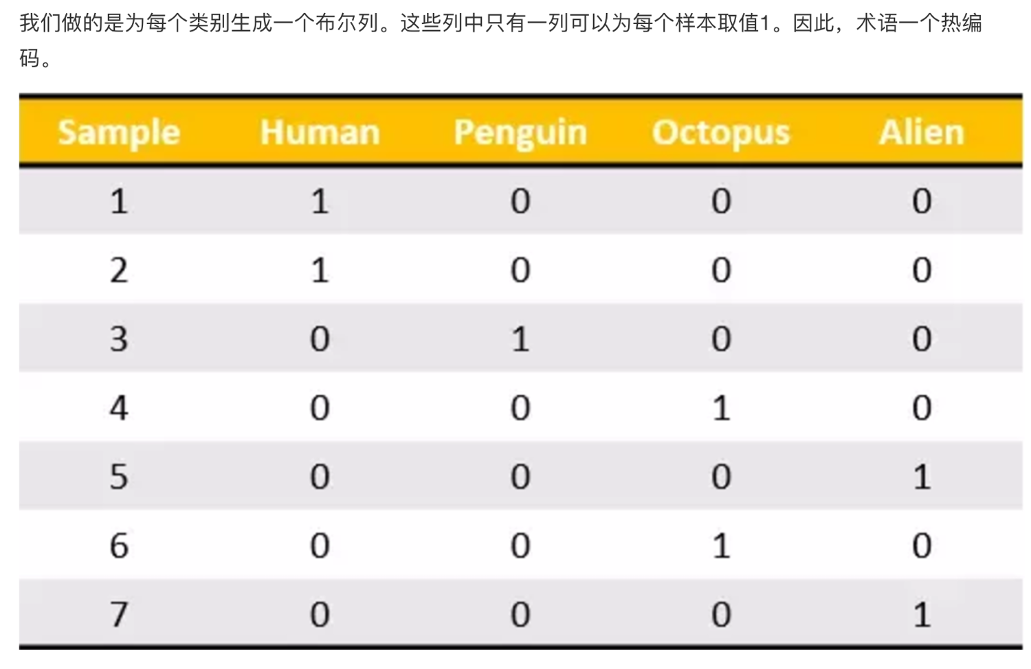 我们把这个处理数据的技巧叫做”one-hot“编码: