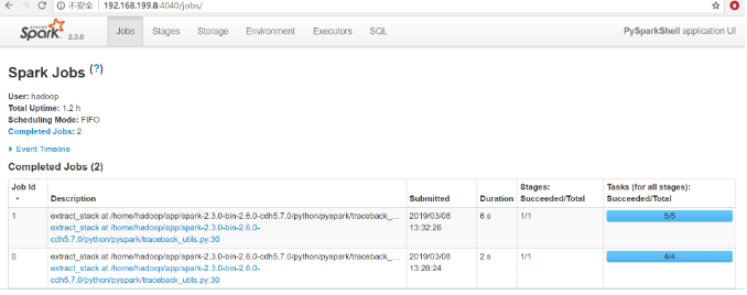 可以在spark UI中看到当前的Spark作业 在浏览器访问当前centos的4040端