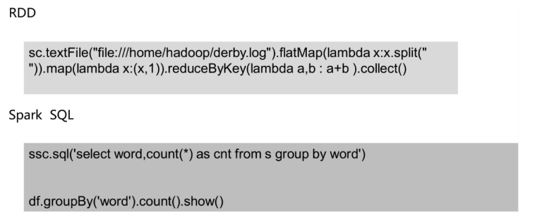 DataFrame还配套了新的操作数据的方法,DataFrame API(如df.select())和SQL(select id, name from xx_table where ...)。