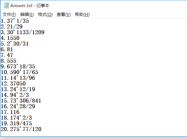 - 在生成题目的同时,计算出所有题目的答案,并存入执行程序的当前目录下的Answers.txt文件。(完成)