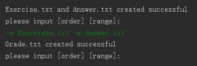 - 程序支持对给定的题目文件和答案文件,判定答案中的对错并进行数量统计, 统计结果输出到文件Grade.txt。(完成)