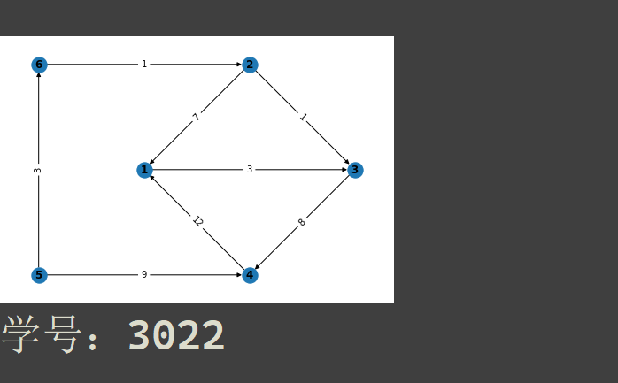 edges_with_weights = [(2, 1, 7), (1, 3, 3), (4, 1, 12), (2, 3, 1), (6, 2, 1), (3, 4, 8), (5, 4, 9), (5, 6, 3)]