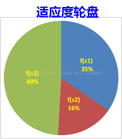 对应到本问题来说,遗传算法的选择是什么样子?在前面说到,每次交叉或者变异是不是产生了新的个体?如果这些个体都保留下来的话,种群是要爆炸的,第一次循环可能有100个x,第二次循环就200个个体,再来那么10万次,哇哦,多少了,好多。显然不可能吧。而且在算法里面,我们还规定的是每次循环都必须保证都是100个个体。那么必须在200个个体中剔除100个吧。好了,问题来了,如何剔除呢?有人说很简单,排名吧,取前100号x不就可以了吗?排名这个东西真的好吗?我就不信,凭什么差一点的不能选上,搞不好在下一次变异中一下子冲到了第一呢?这个问题在选择上也有一些对应的规则,最通用的就是轮盘赌法,简单来说就是一种概率选择法(当然还有许多其他的方法,感兴趣的自己搜相关的文献吧,我也没用过)。什么是轮盘赌法呢?就是把对应所有y值(适应度函数值)加起来,再用各自的y值去除以这个sum值,这样是不是谁的概率大谁的概率小就很清楚了?然后再随机生成一个0-1的概率值p,谁在p的范围里面是不是就选择谁,比如说x=3时在100个x中y的值最大,那么选择它的概率是不是就最大,比如说是0.1(0.1小吗?不小了好吧,想想其他的会是什么,都比0.1小,那么从概率上讲,选100次的话,是不是就有10次选择x=3,其他的都不足10次是吧,那么在下一次100个种群个体中就有10个x=3了,再来一回可能就有20个x=3的个体了。再就是30个,最后就只剩下100个x=3的个体了,它自己在哪里交叉变异已经没有意义了,如果到了这个时候就意味着这个算法可以结束了)。再详细点,如下图所示吧:现在要在下面三个大类中选取100个x个体,轮盘赌转100次以后,是不是个体数落在s3中的个体多一些,选择的原理就是这样,再不明白直接后面的程序吧。