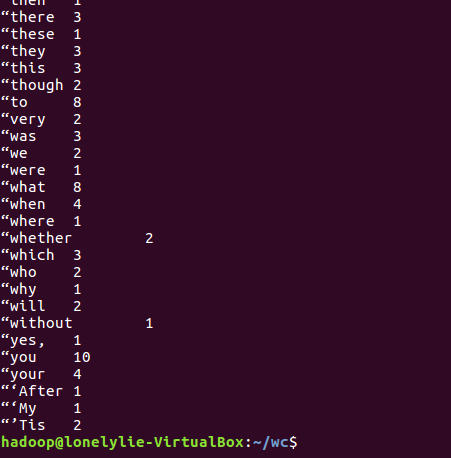 hdfs dfs -cat wcoutput/part-000000