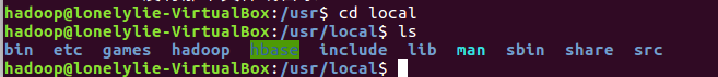 cd /usr/local sudo chown -R hadoop:hadoop ./hbase