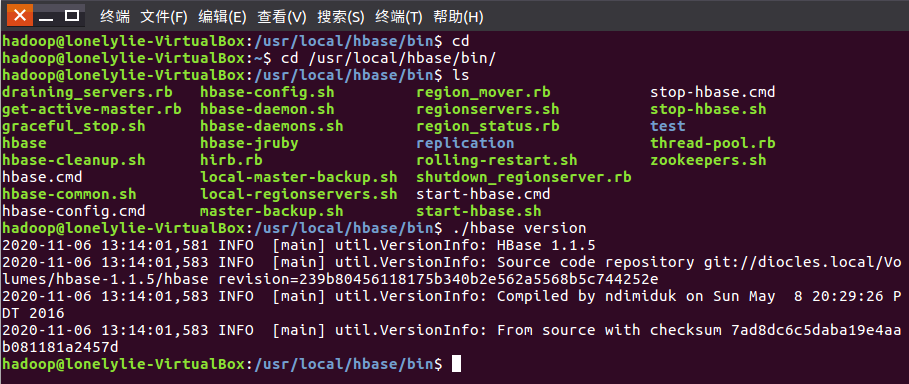 cd /usr/local/hbase/bin ./hbase version