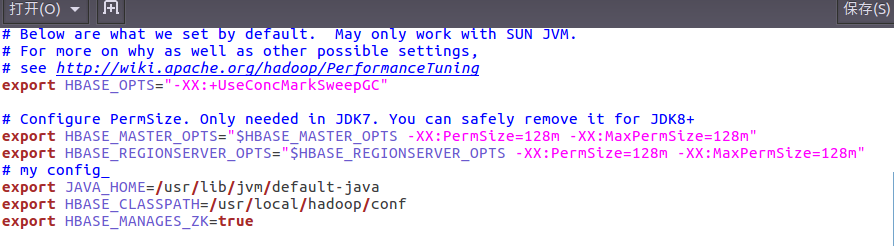 gedit /usr/local/hbase/conf/hbase-env.sh