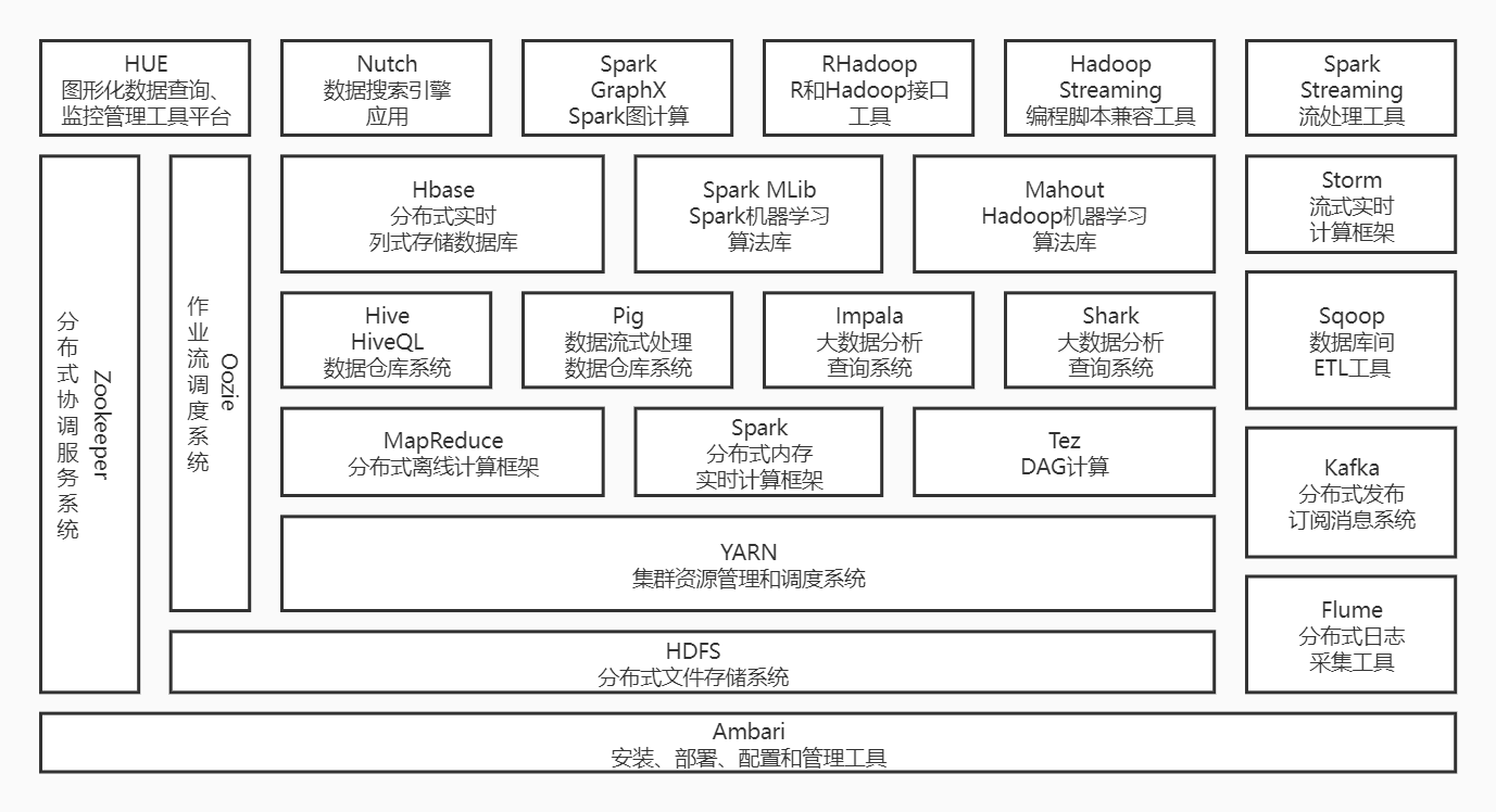 1.列举Hadoop生态的各个组件及其功能、以及各个组件之间的相互关系,以图呈现并加以文字描述。