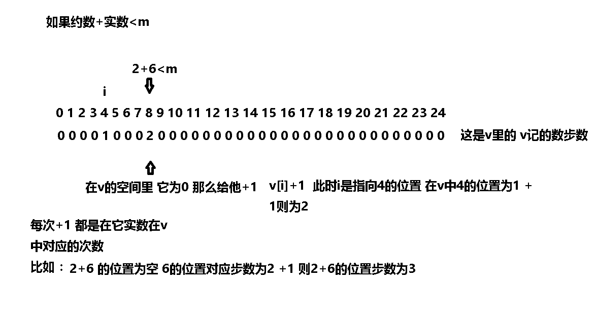 //约数+实数 k+x 小于m时 并且v中已经存在了步数 那么保留最小步数