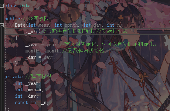 2.如果还有内置类型成员,声明时给了缺省值