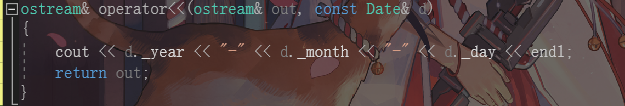 因为要支持连续打印,输出,所以要要用cout或cin的类型作为返回类型,返回in、out的引用,支持连续打印,输出