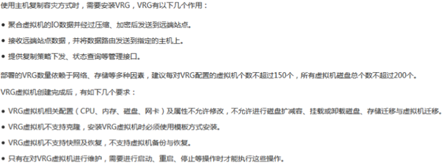 主机复制容灾,只适合于主备容灾场景,因其通过 VRG完成数据容灾,RPO、RTO 值都大于0。