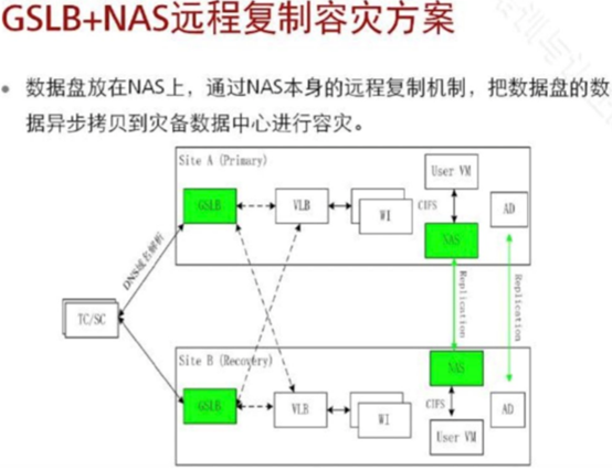 存储阵列复制容灾:利用存储设备的远程复制技术(hyperereplication),将数据从生产中心复制到灾备站点,实现容灾。