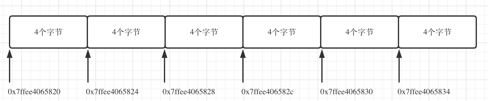 1 void test_arr() { 2 int array[2][3] = { 3 {0, 1, 2}, 4 {3, 4, 5} 5 }; 6 cout << &array[0][0] << " " << &array[0][1] << " " << &array[0][2] << endl; 7 cout << &array[1][0] << " " << &array[1][1] << " " << &array[1][2] << endl; 8 } 9 10 int main() { 11 test_arr(); 12 }