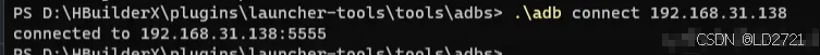 7.出现 unable to connect to 192.168.31.138:5555: cannot connect to 192.168.31.138:5555: 由于目标计算机积极拒绝,无法连接。