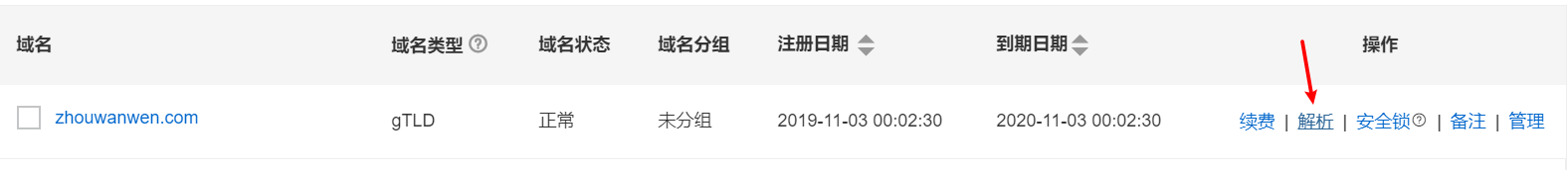 - 我们会发现里面有4行数字,接下来,我们进入阿里云的域名控制台,然后点击解析