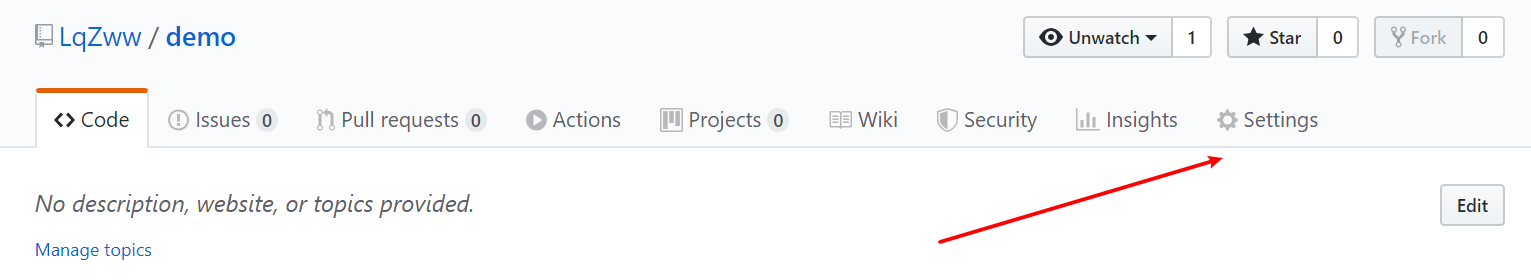 - 首先你在Github上有了一个自己的一个仓库,然后进入自己的仓库,并点击 Settings