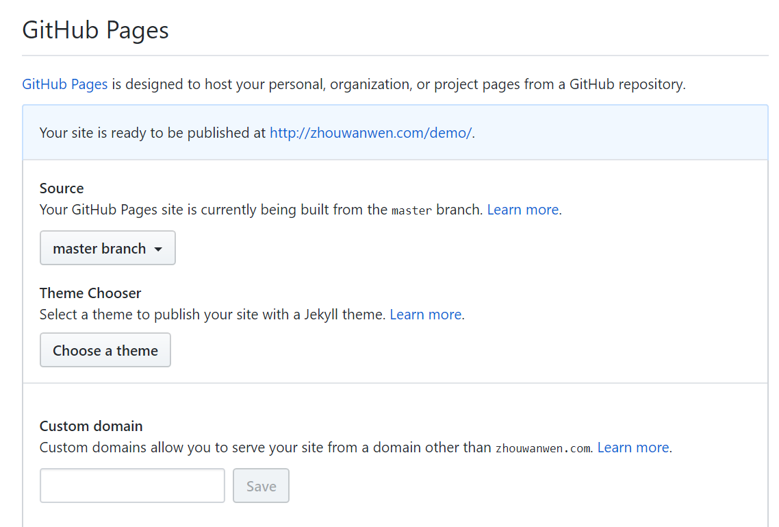 - 然后往下划,找到 GitHub Pages,点击 Learn more