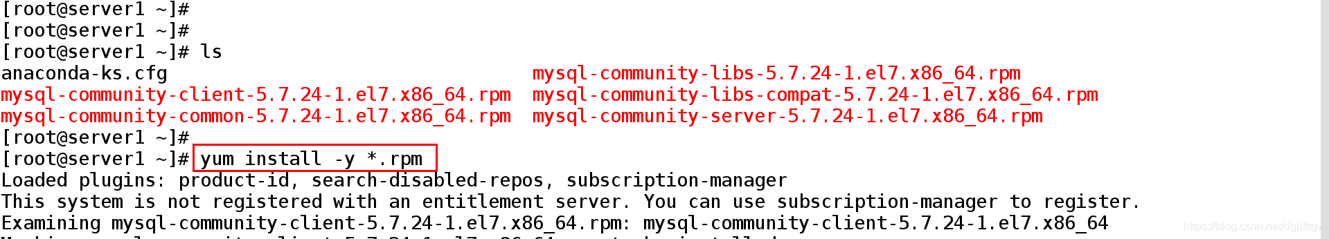 [root@server1 ~]# yum install -y *.rpm ##安装此路径下所有带有rpm的软件包