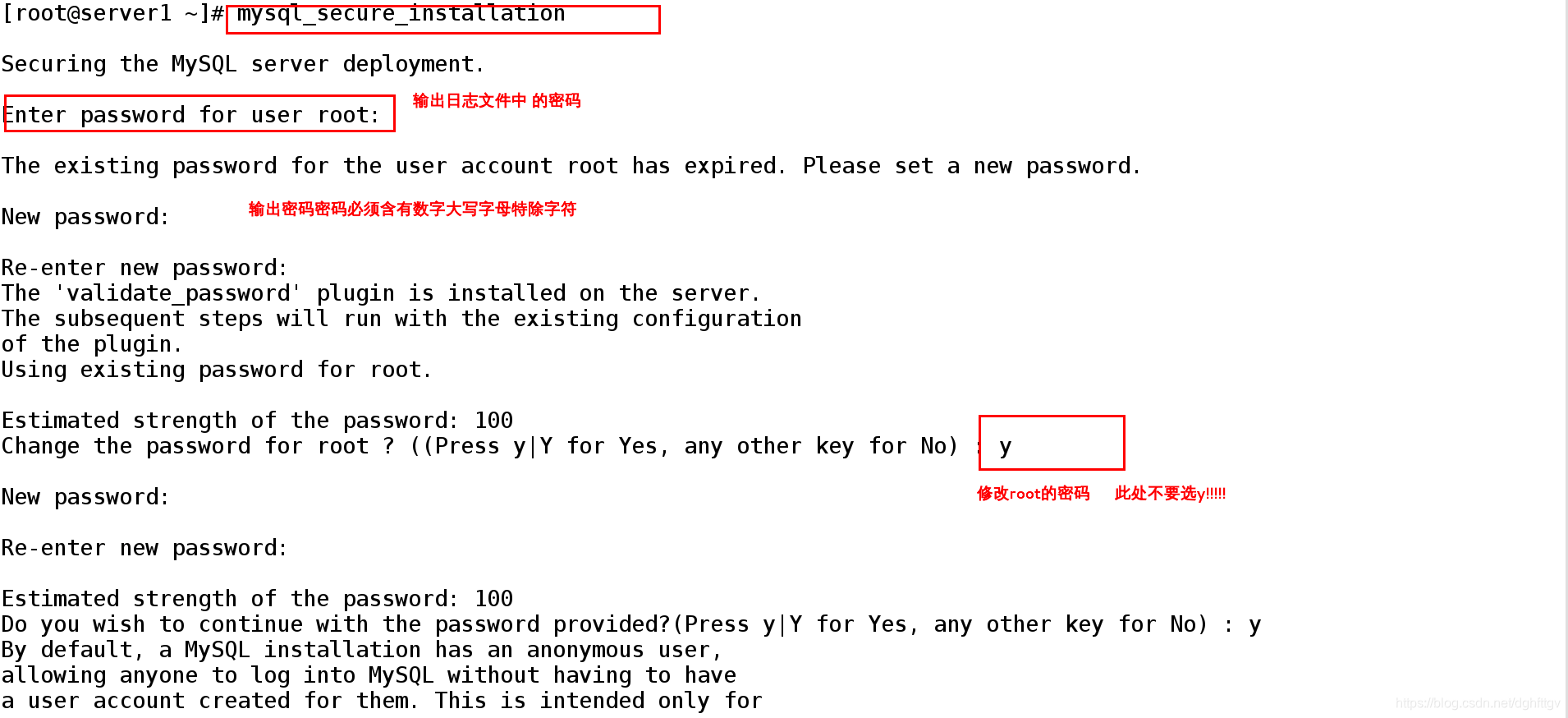 安全初始化登陆的时候使用的是临时密码,接下来要自己设置数据库的密码,这个密码必须有特殊字符,英文字母的大小写还有数字