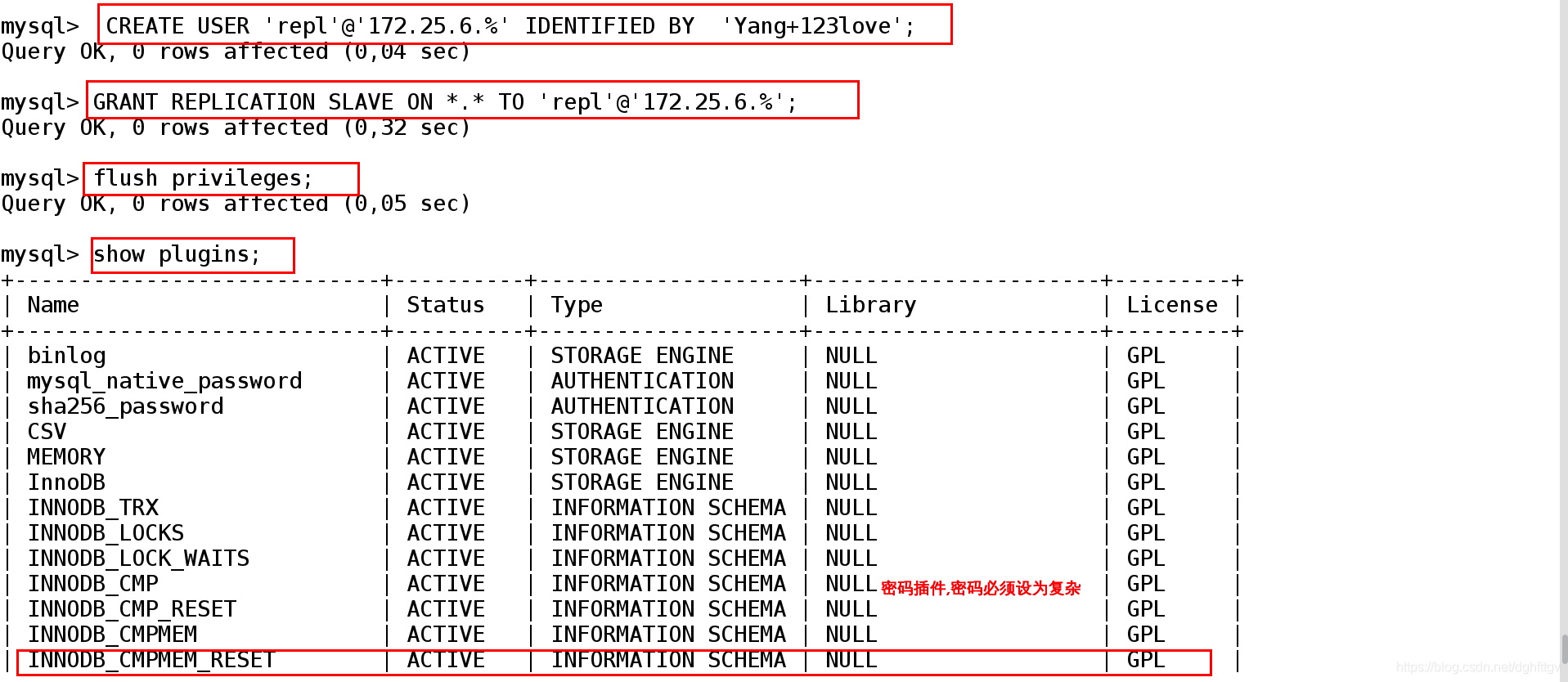 | ‘172.25.6.%’ | 授权172.25.6网段的所有数据库节点都可以同步(复制) |