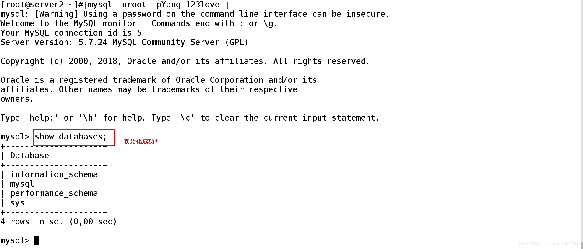 Enter password for user root: ##输入安全初始化数据库的密码