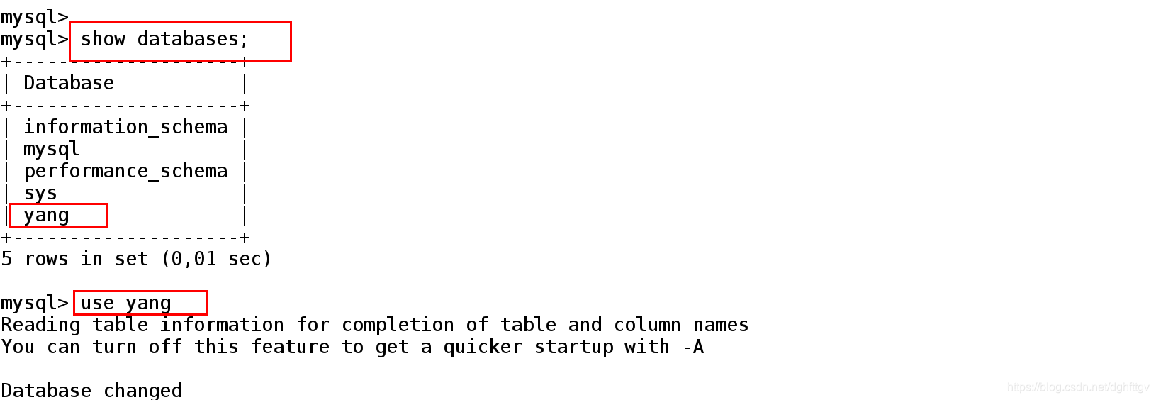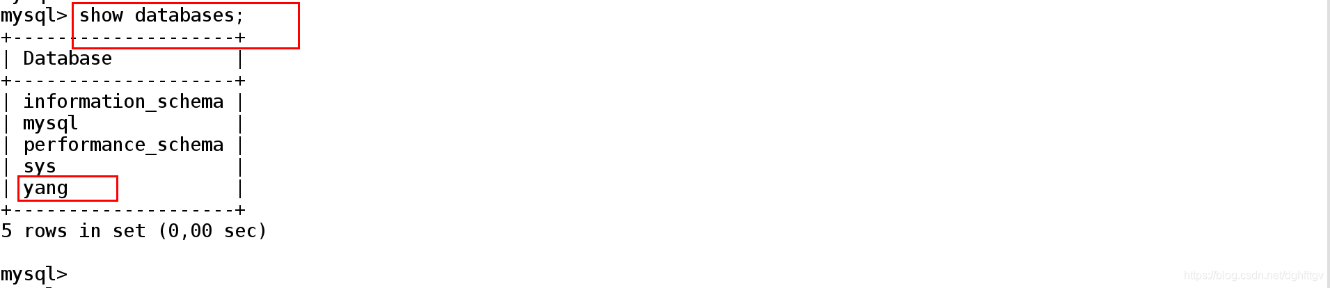 mysql> show databases;