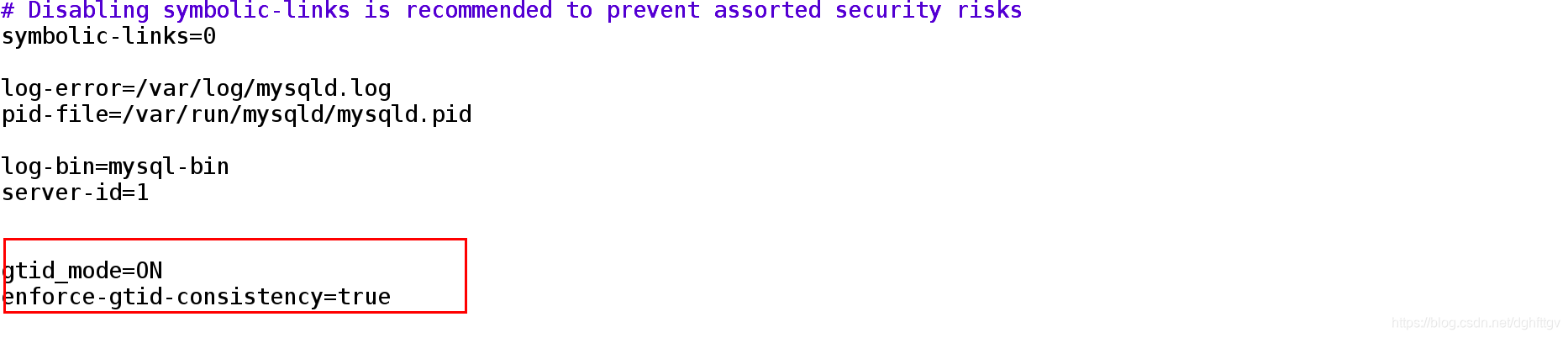 - 步骤一:修改配置文件加入开启gtid的信息