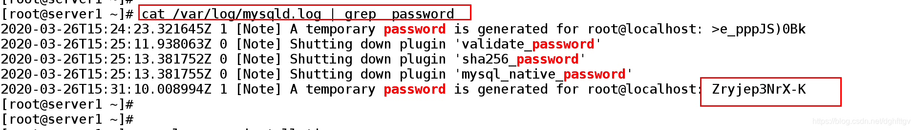 [root@server1 ~]# cat /var/log/mysqld.log | grep password ##查看初始密码