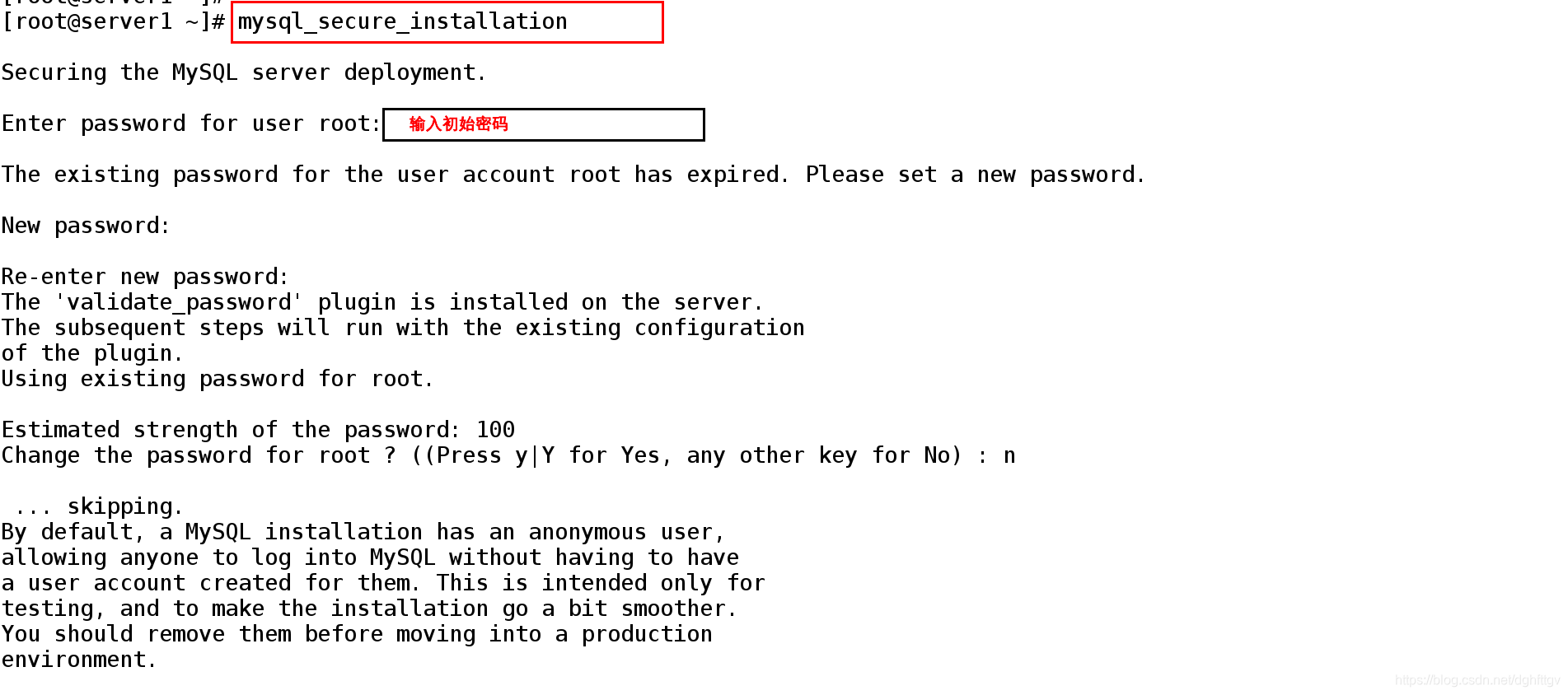 [root@server1 ~]# mysql_secure_installation ##初始化数据库