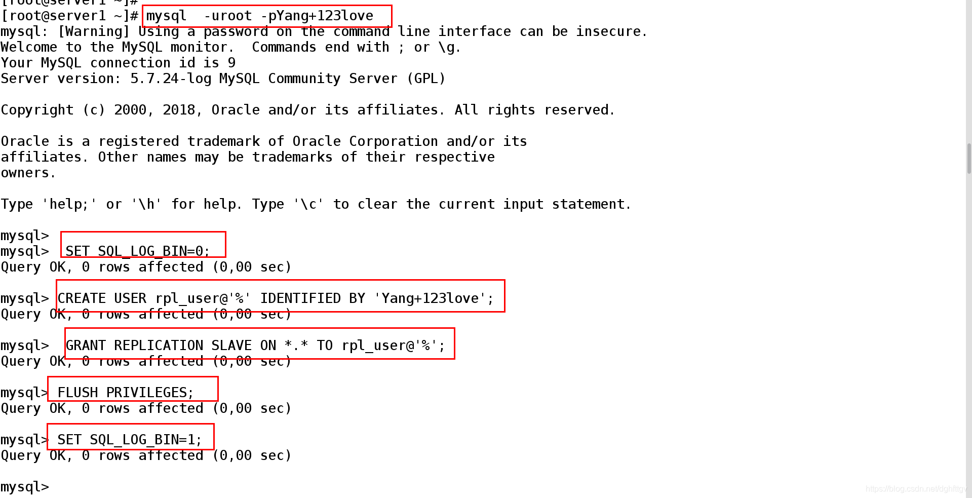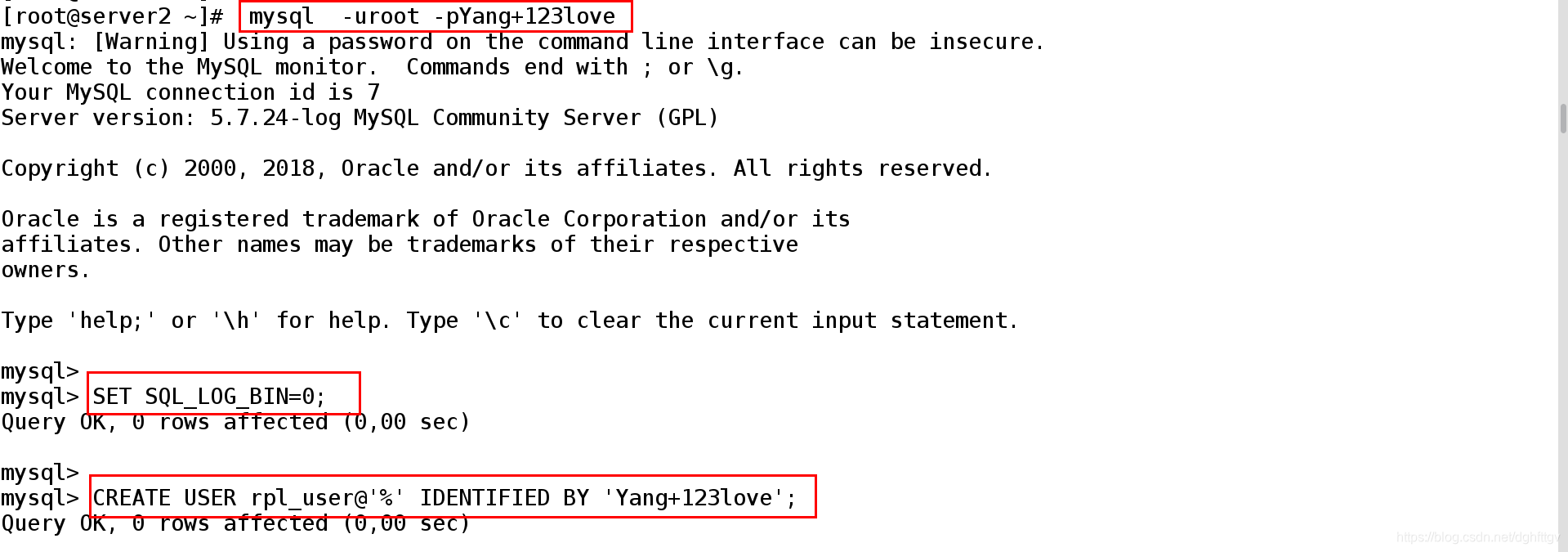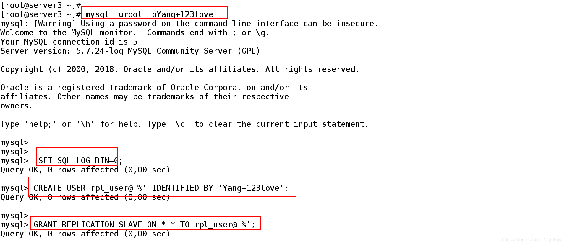 mysql> CREATE USER rpl_user@'%' IDENTIFIED BY 'Yang+123love'; #创建用户