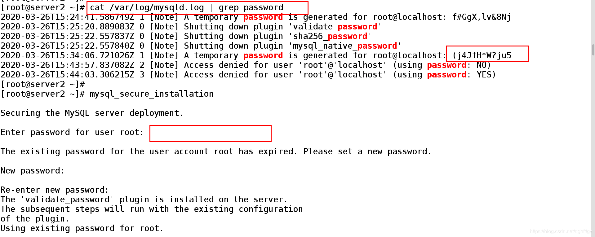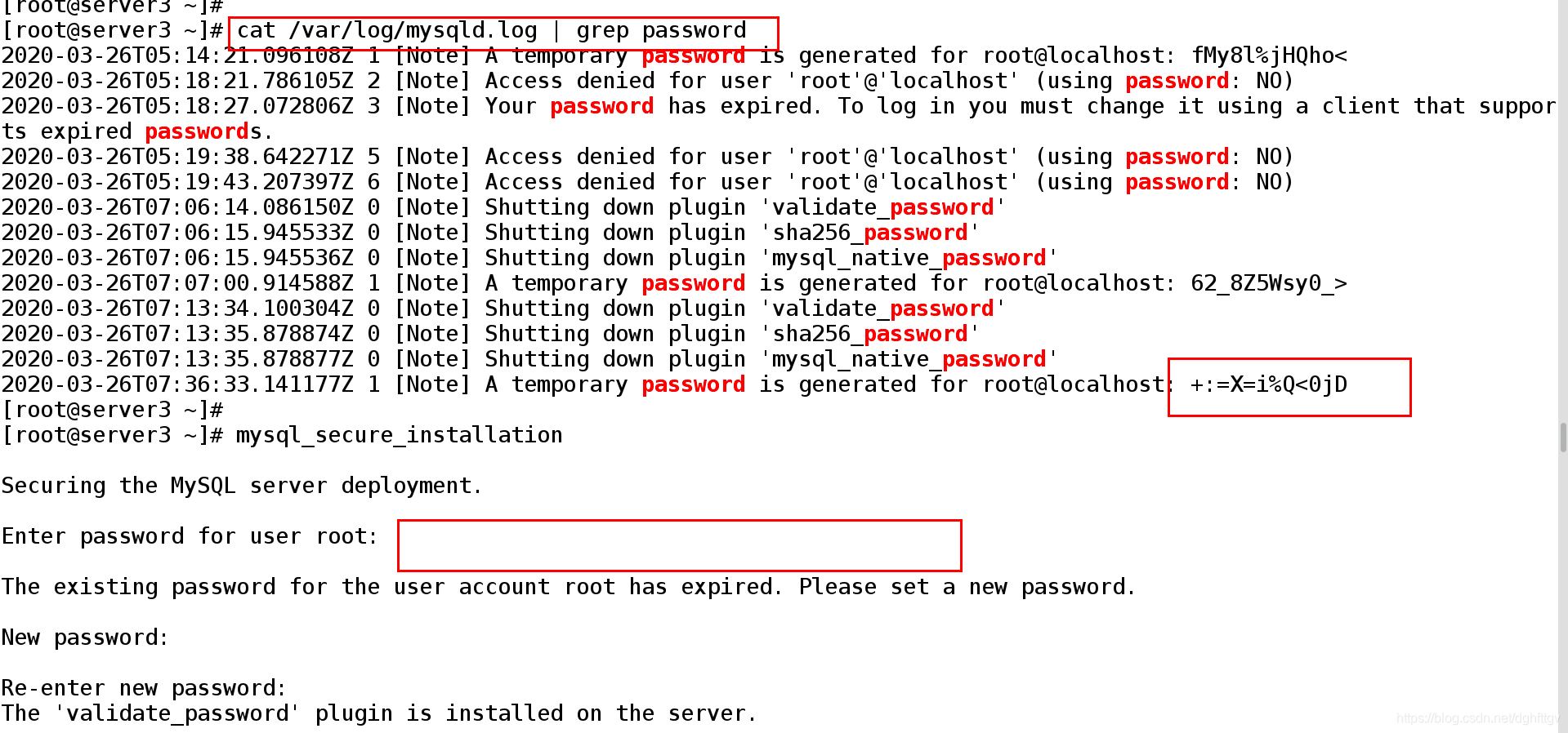 [root@server3 ~]# cat /var/log/mysqld.log | grep password ##查看初始密码