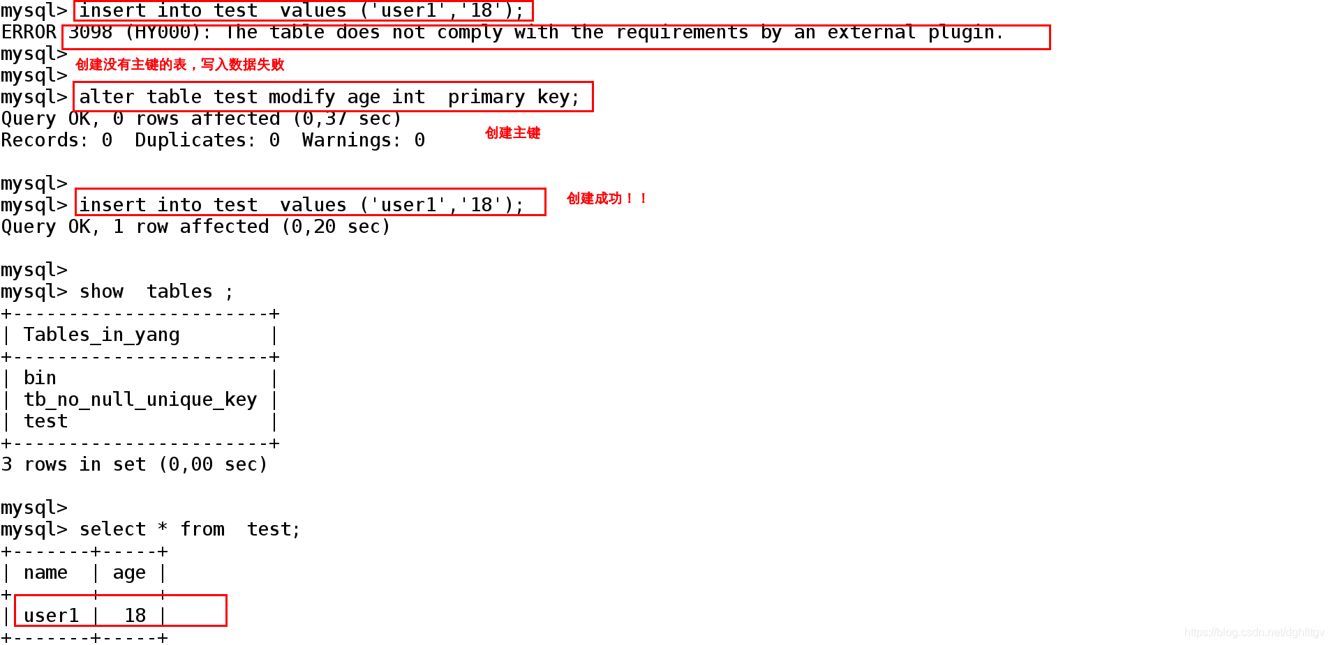 - ERROR 3098 (HY000): The table does not comply with the requirements by an external plugin.