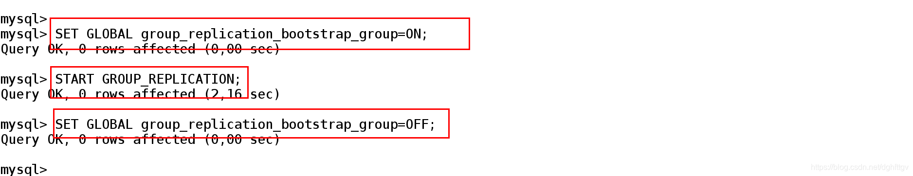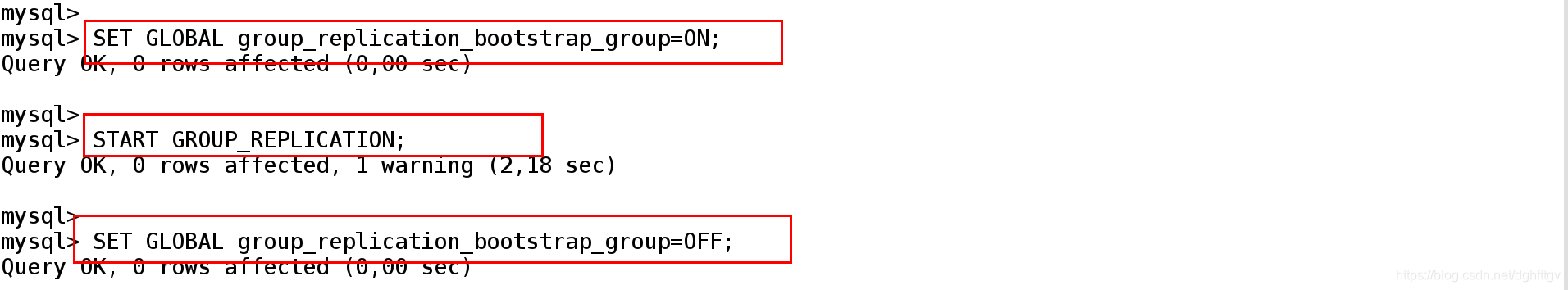 SET GLOBAL group_replication_bootstrap_group=ON;
