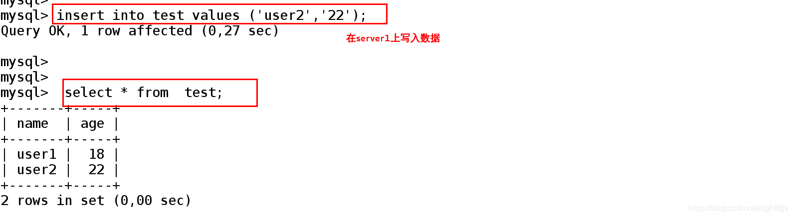 在server1(master)、server2(slave)、server3(slave)上进行读写操作