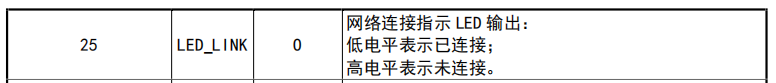 ①查询硬件LINK脚(25脚)的电平状态,一般这个脚都是接到网口灯,低电平表示PHY已协商,高电平表示未连接