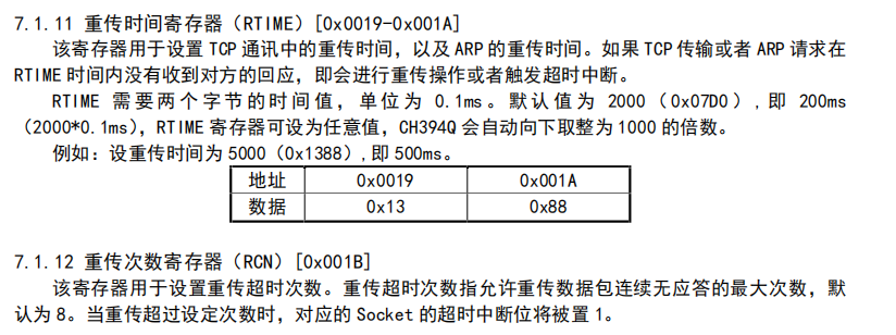 1 CH394Q_SetSn_KEEPALIVE(0,1);////首先使能socket_0的keepAlive功能,这里的0代表socket0,1代表芯片每隔5秒发送一次keepAlive包 2 CH394Q_SetRTIME(2000);//设置重传时间,200ms 3 CH394Q_SetRCNT(2);//设置重试次数,2次